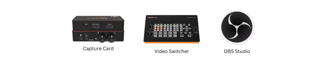 - USB webcams – Easiest to use and very affordable. These can be used as the main cameras or set up to capture different angles.