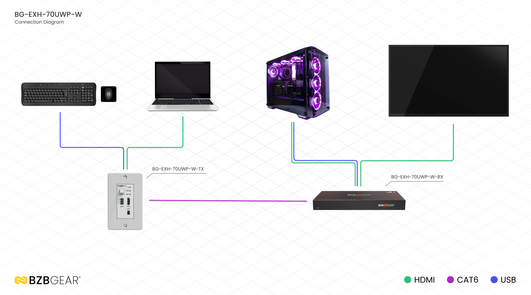 - 1x 18Gbps HDBaseT 70M with USB-C/HDMI & KVM Function Wall Plate Transmitter