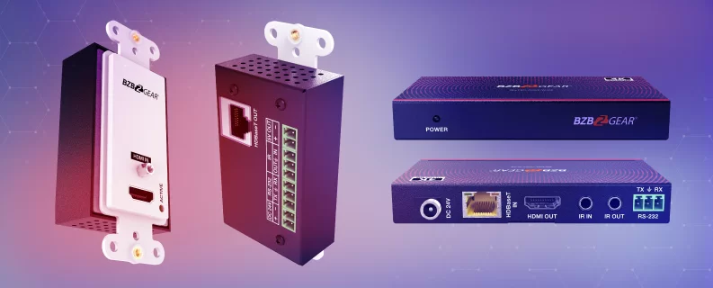 | Receiver | Input: 1x HDBaseT IN [RJ45, 8-pin female] Output: 1x HDMI OUT [Type A, 19-pin female] Controls: 1x IR in, 1x IR out, 1x RS-232 serial port |