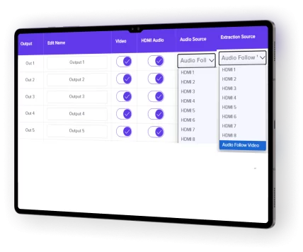 - Audio Extraction 1~8: 3.5mm ports, Sampling Rate: 32K~192Khz.
