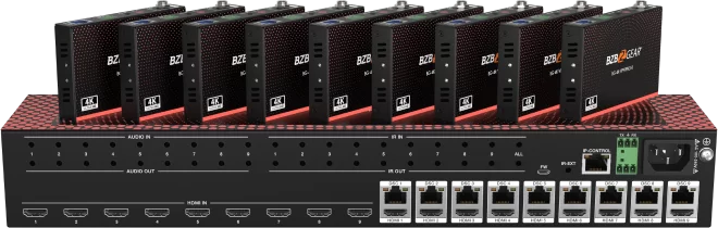 9x9 4K UHD Seamless HDMI Matrix Switcher/Video Wall Processor/MultiViewer Over Cat5e/6/7 Kit with 9 Receivers