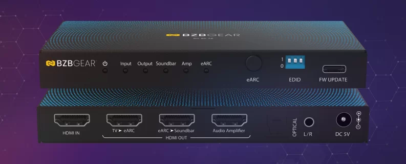 | Output | 1 x TV(eARC) OUT [HDMI Type A, 19-pin female] 1 x Soundbar eARC OUT [HDMI Type A, 19-pin female] 1 x Amp AUDIO OUT [HDMI Type A, 19-pin female] 1 x OPTICAL [S/PDIF] 1 x L/R [3.5mm Stereo Mini-jack] |