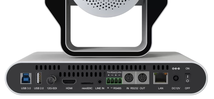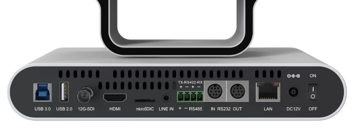 | Interfaces | HDMI, 12G-SDI, LAN (support POE), USB 2.0, A-IN, USB 3.0, Micro SD (FAT32), RS232-IN, RS232-OUT, RS422 (Compatible with RS485), Dial switch, DC12V, Power Switch, NDI|HX3, Dante AV-H |