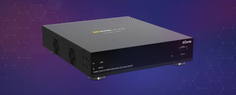 2-Channel 150W Compact Class D DSP & Amplifier with Digital/Analog Audio and 2x2 Dante In/Out