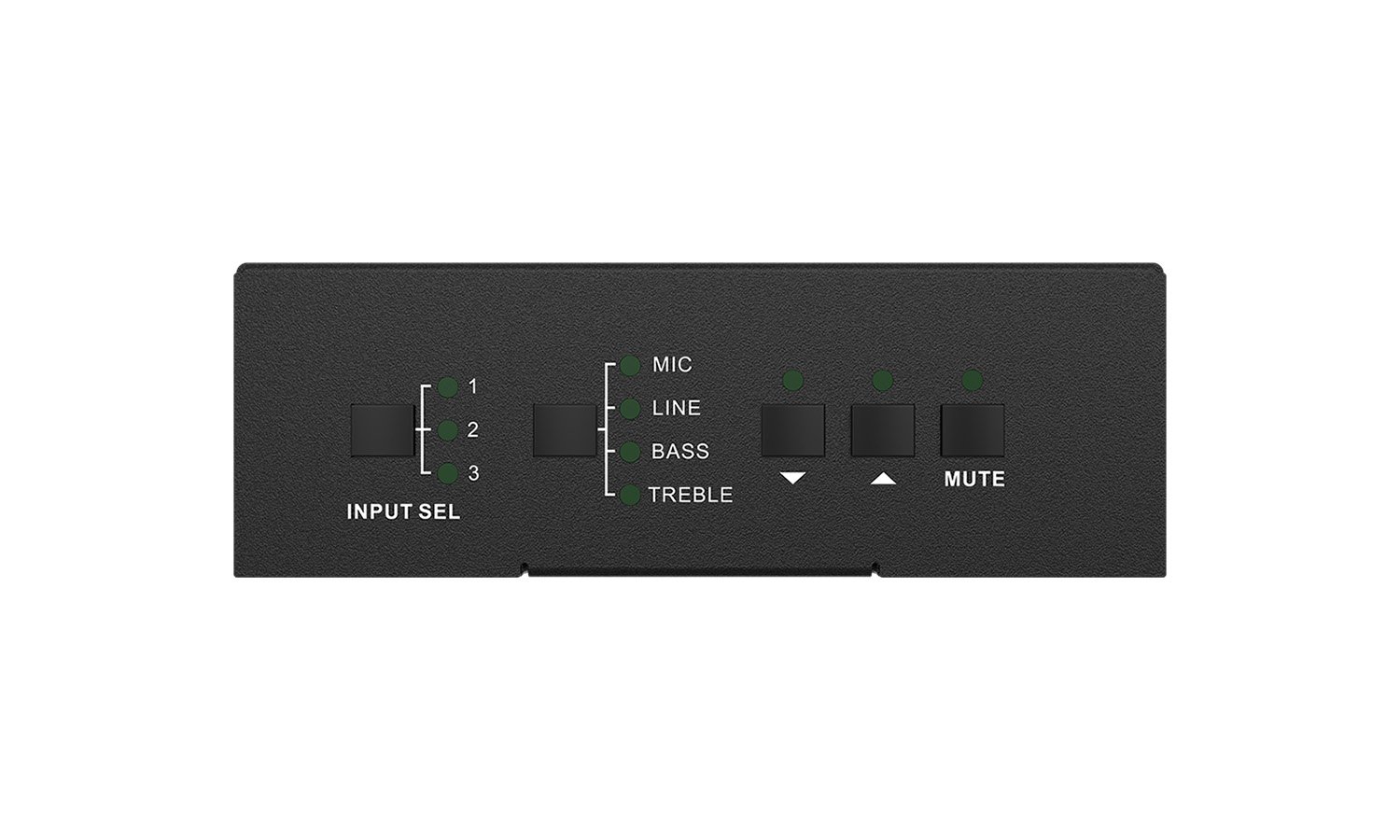 - Audio Input Selection: Press the INPUT SEL button to select an input audio source, After choosing an audio source, the corresponding LED indicator will illuminate.