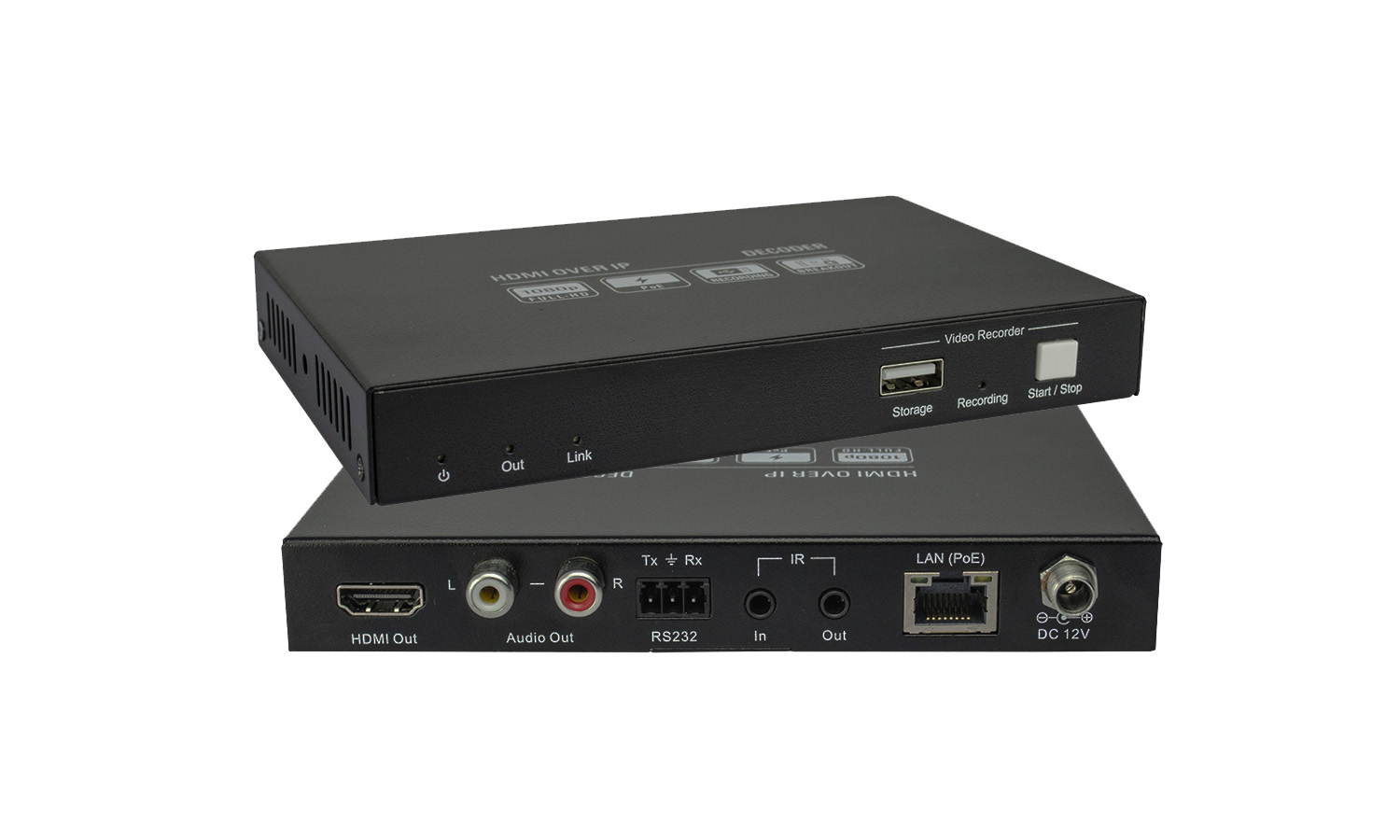 The BG-AVOIP1080D is a 720/1080P HD IP Streaming Decoder which utilizes H.264 standard to extend HDMI video, IR and RS232 control signals over an LAN/IP network. For control, designate a PC (Wake on LAN) and one 100Mbps Network switch .