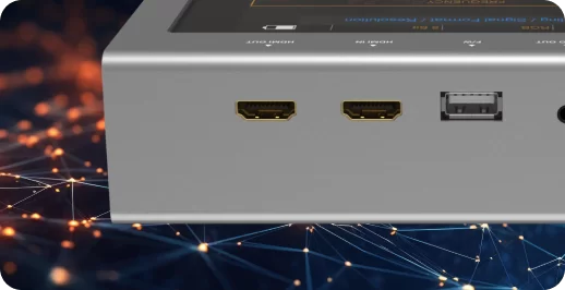 - USB: Connect to USB device for mouse control, uploading user created test patterns, EDID information, and firmware updates.