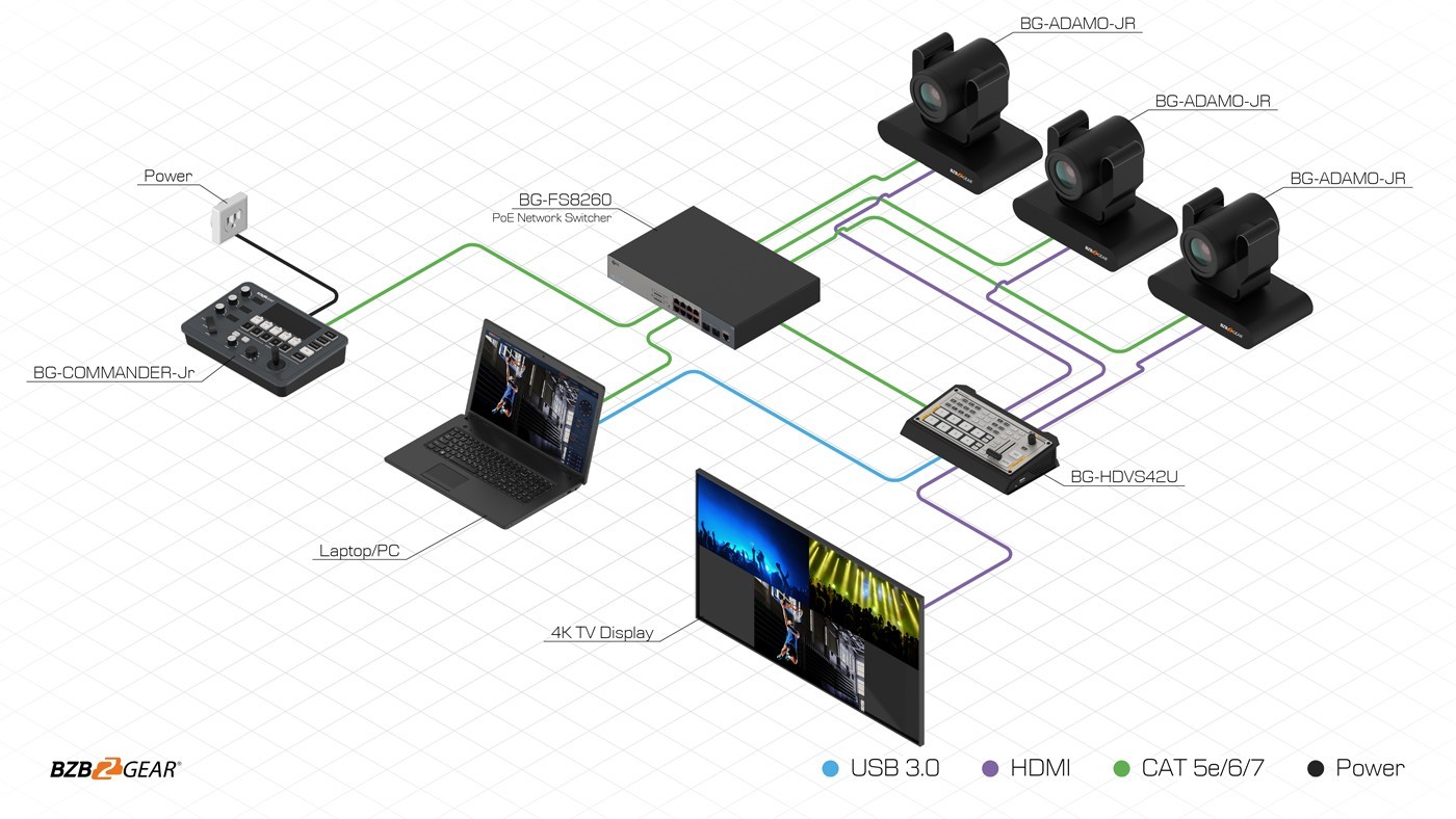 4K UHD Serial and IP 4-Channel Production Switcher/Joystick Controller Combo with Touchscreen and POE (IP/RS-232/422/485)