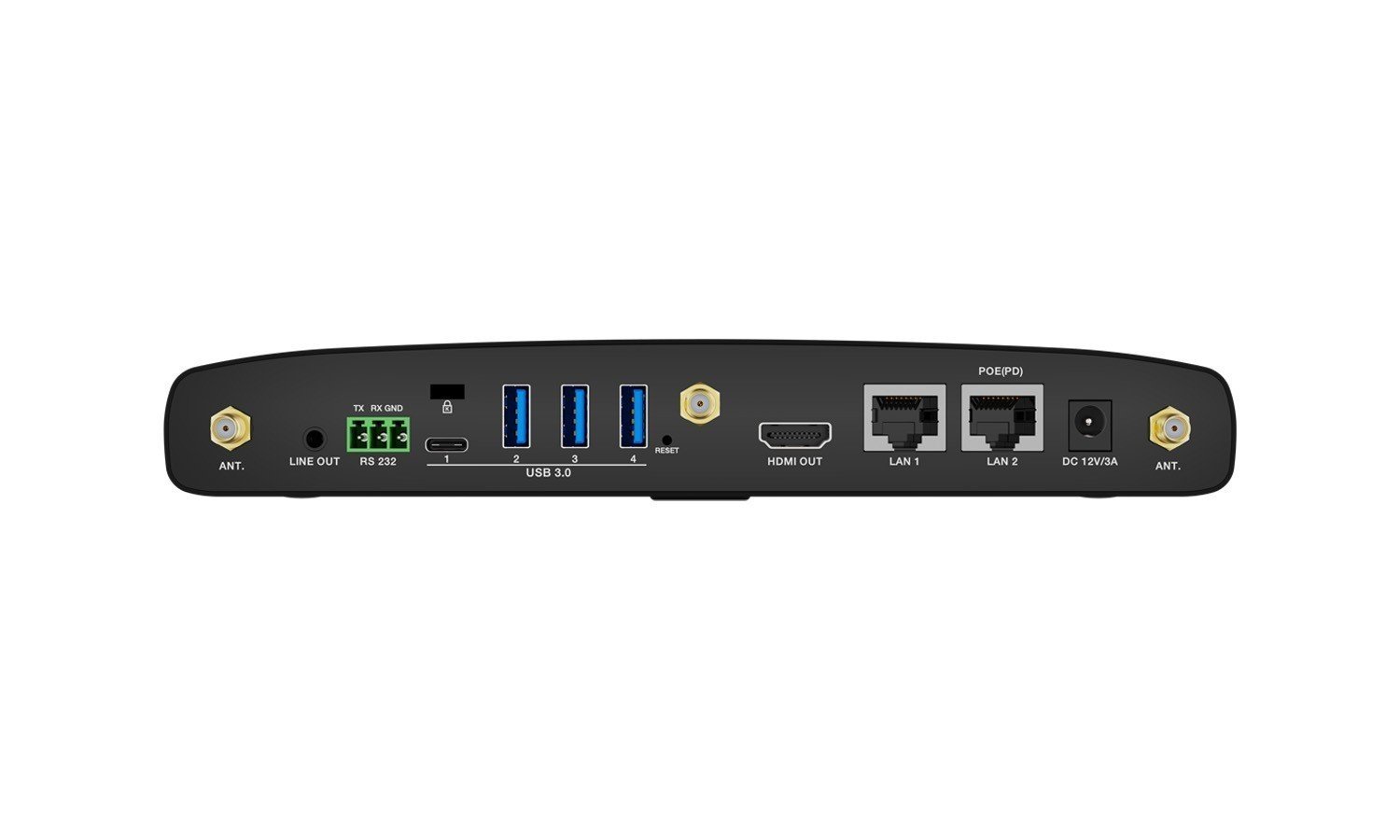 - Front Type-A USB connector: For mouse control, USB touch screen etc.