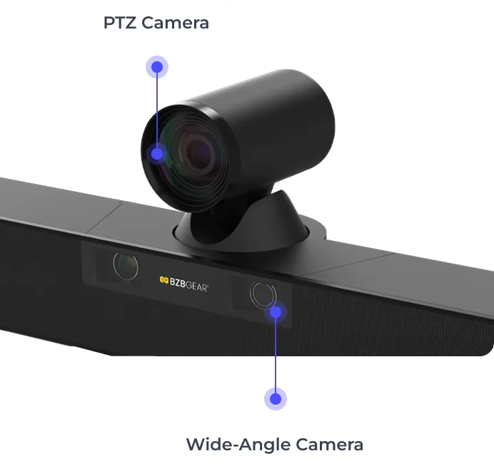 | AI Features | AI Auto Framing: Automatically adjusts composition based on meeting room occupancy. Speaker Tracking: Tracks active speakers using sound source localization and analysis. Smart Gallery: Facial recognition extracts and arranges participant close-ups. |