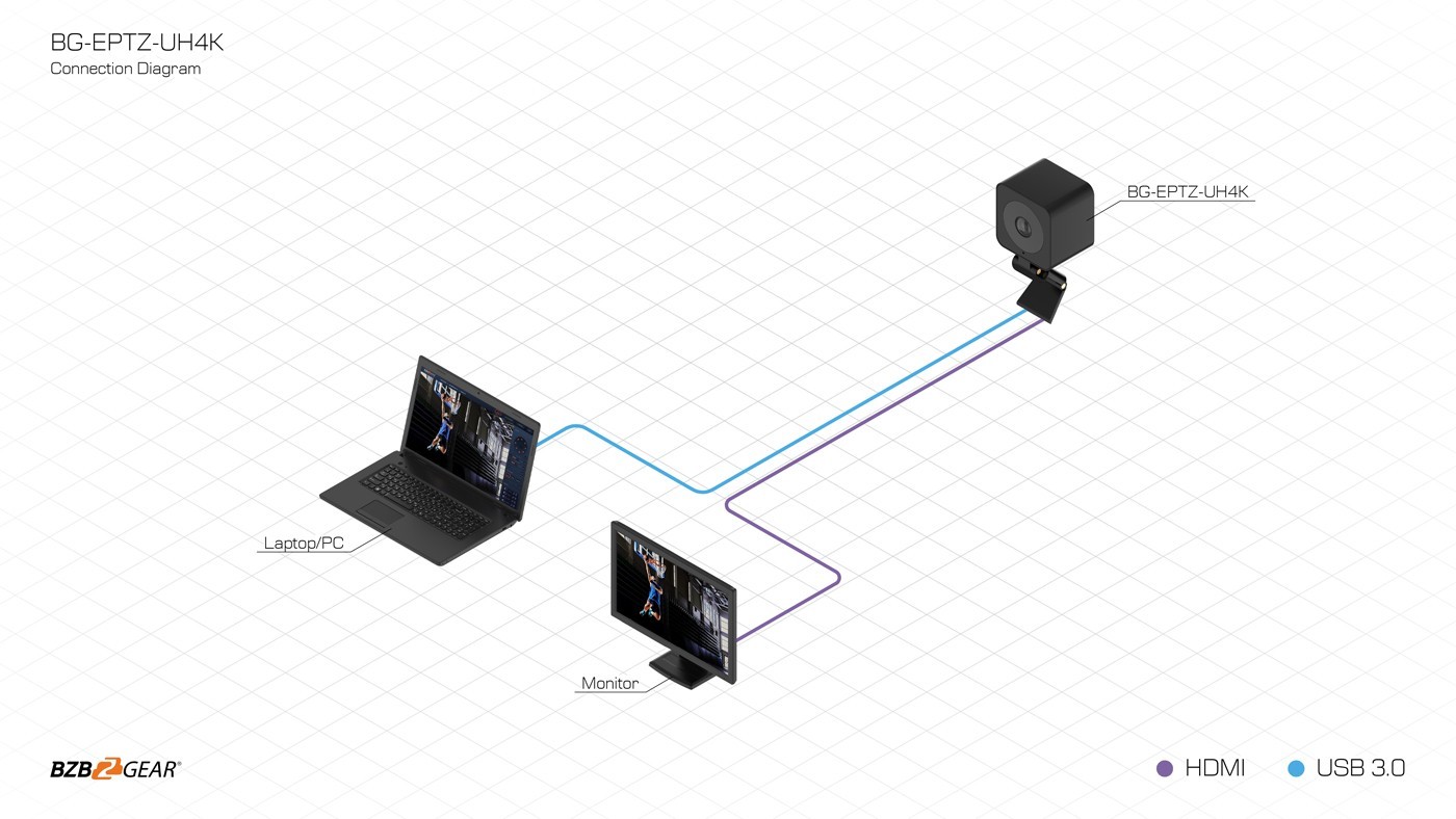 USB: Connect USB3.0 type B cable to a PC for plug & play connectivity for any conferencing service like Skype or Zoom.
