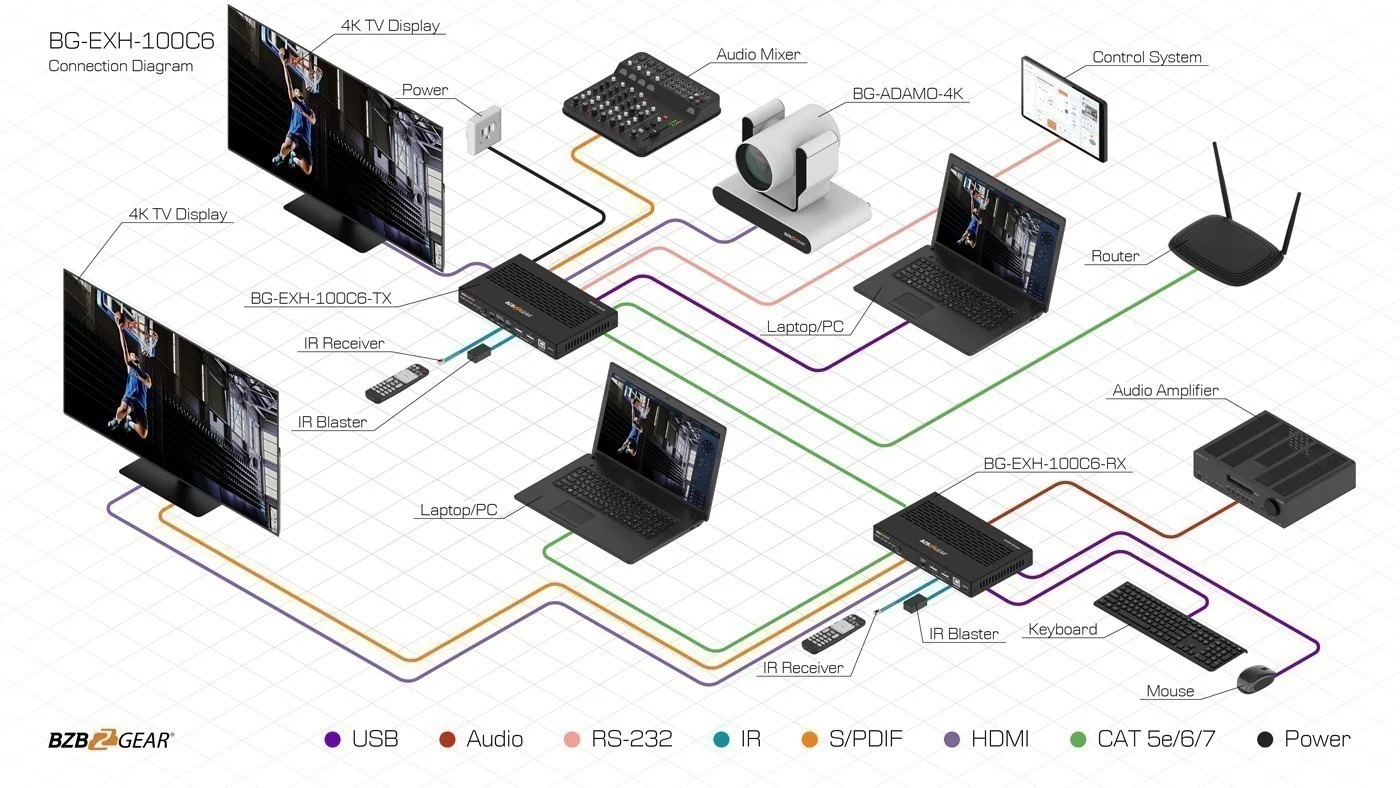 | Transmission Distance | 330ft / 100m (via a single CAT 6A/7 cable) | ||