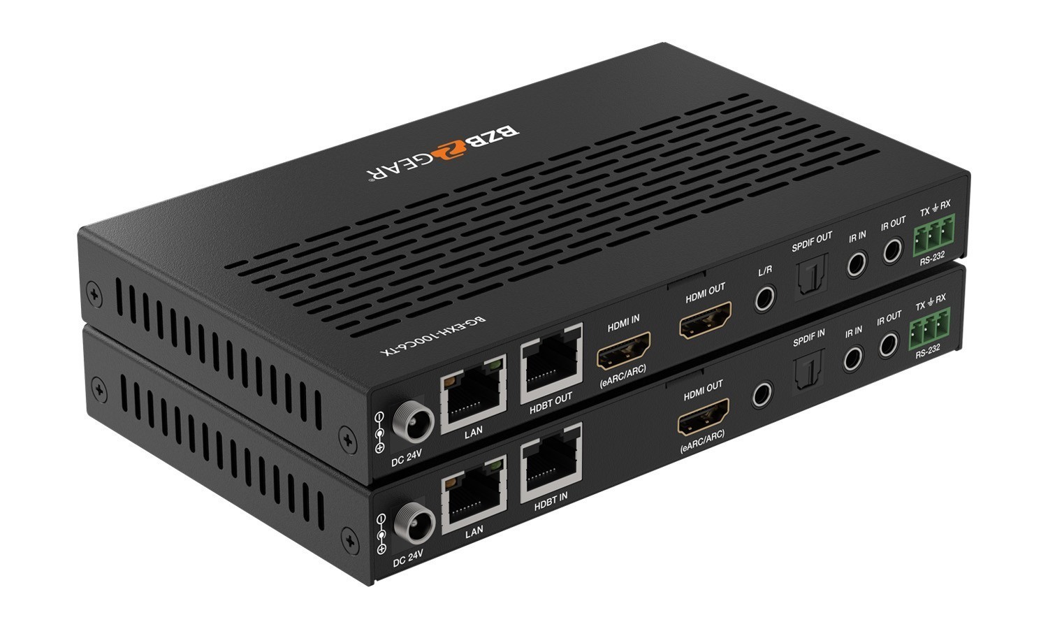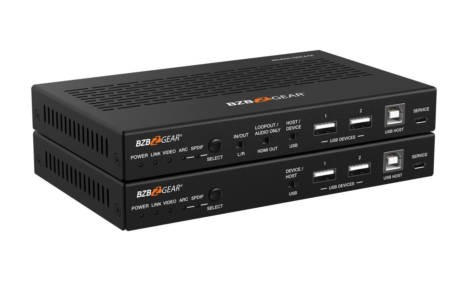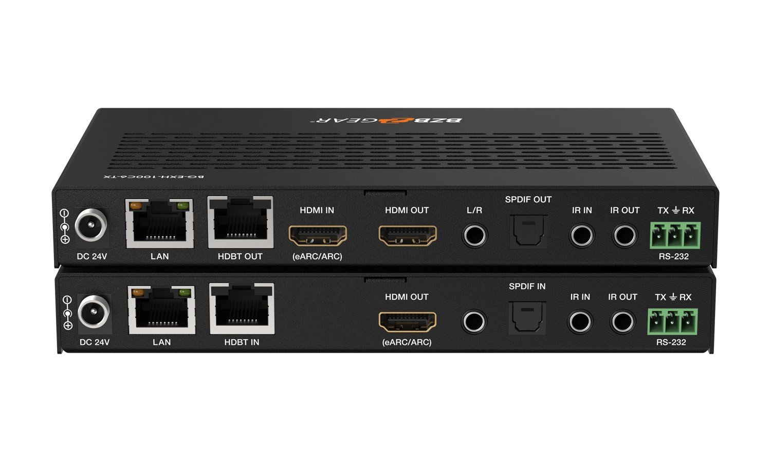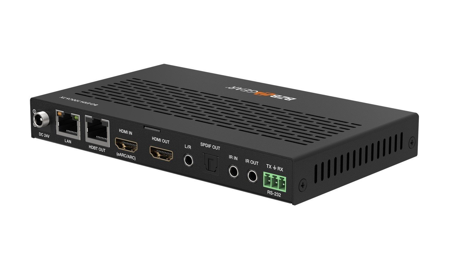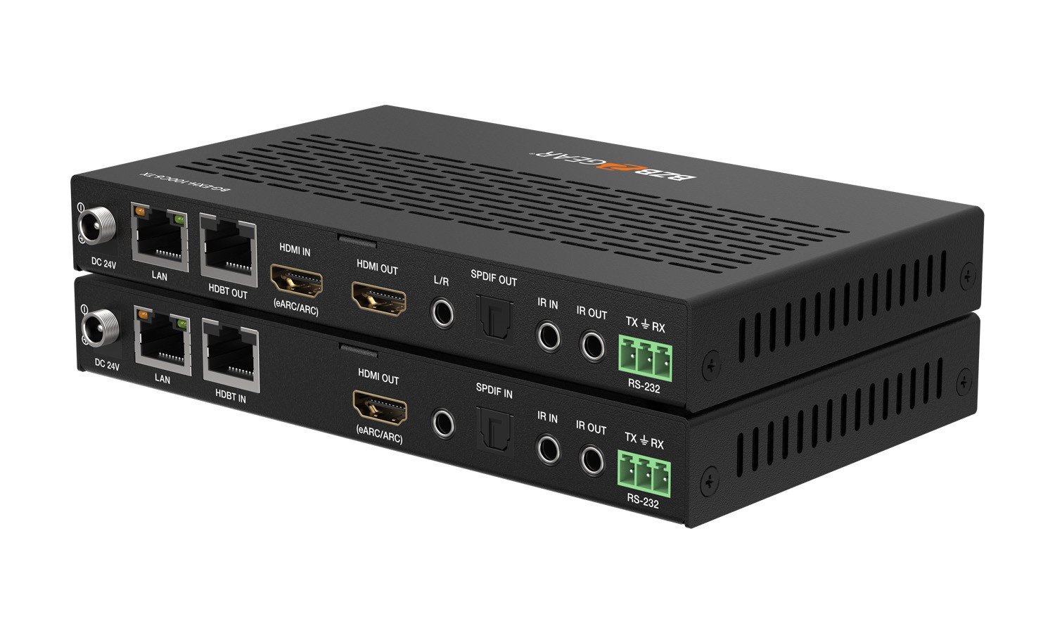 | Receiver | Input: 1 x HDBT IN [RJ45, 8-pin female] / 1 x SPDIF IN [S/PDIF] Output: 1 x HDMI OUT [Type A, 19-pin female] 1 x L/R OUT [3.5mm Stereo Mini-jack] Control: 1 x IR IN [3.5mm Stereo Mini-jack] 1 x IR OUT [3.5mm Stereo Mini-jack] 1 x RS-232 [3pin-3.81mm Phoenix jack] 1 x SERVICE [Mini-USB, Update port] 1 x USB HOST [USB Type B] 2 x USB DEVICES [USB Type A] 1 x LAN [RJ45] |