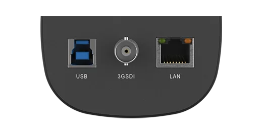 - LAN: Connect to a network switch via category cable to supply power (PoE), control (TCP/IP or webGUI) and stream.