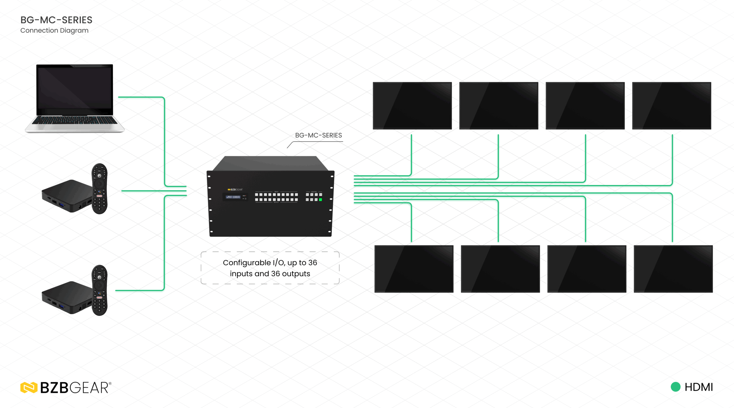 8x8/16x16/36x36 Modular and Fully Configurable Seamless 4K60 Matrix Switcher with Video Wall and Included Control System