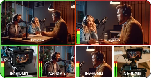 - PGM: HDMI 1.4, 19-pin female program live output.