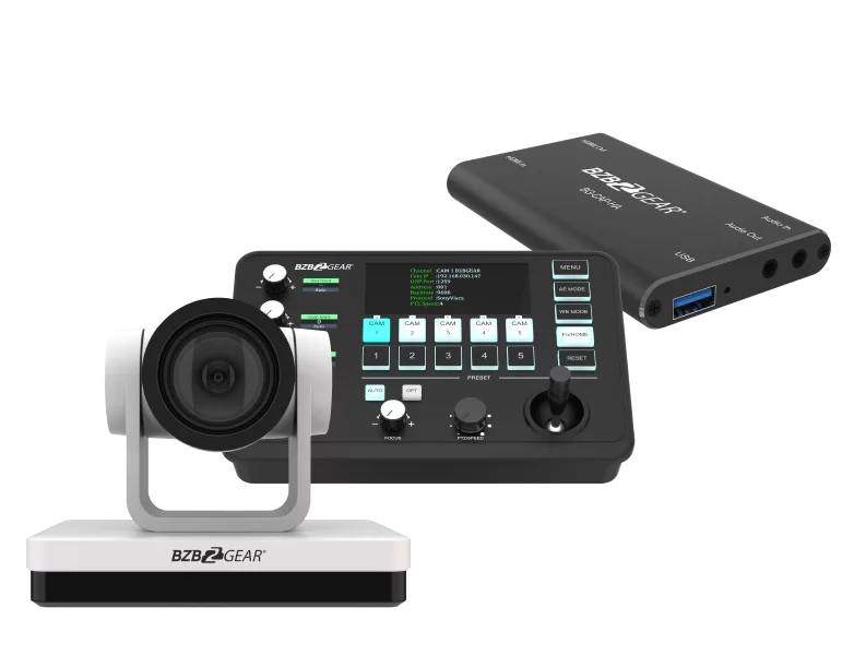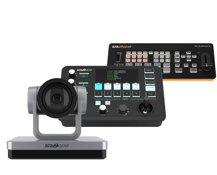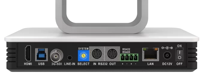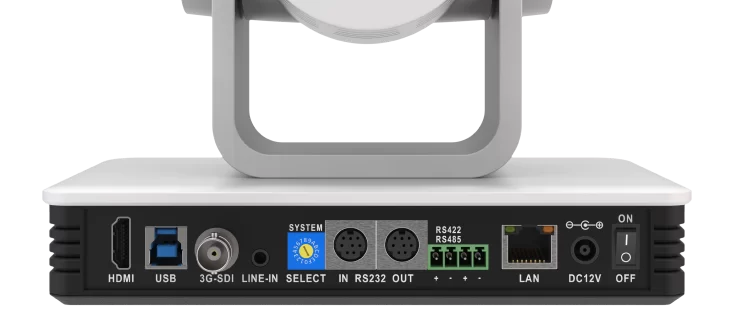 - RS-232, RS-422/485: Connect cascading RS-232 or RS-422/485 to control the camera(s) with a joystick controller or control software.