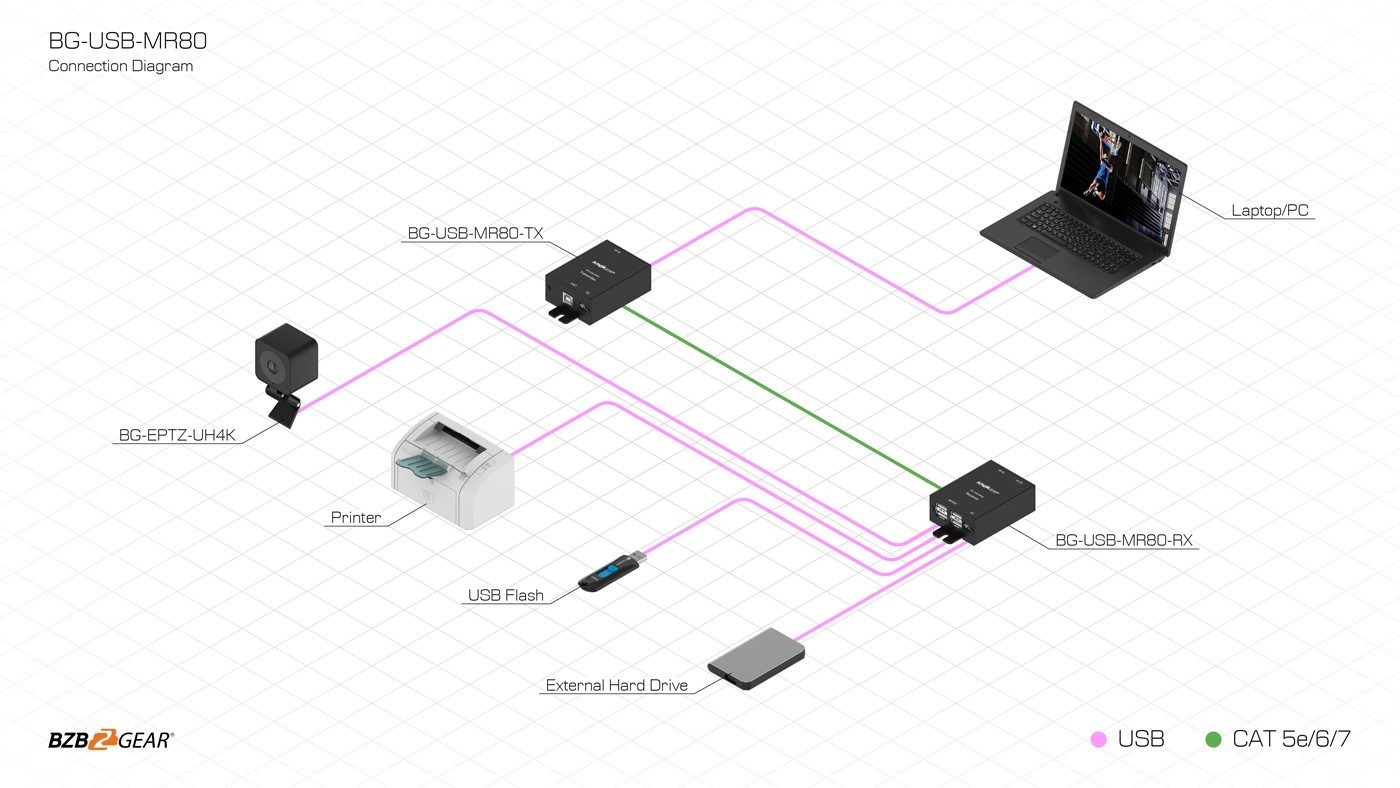 | USB over UTP transmission | Up to 264feet (80 meters) | ||