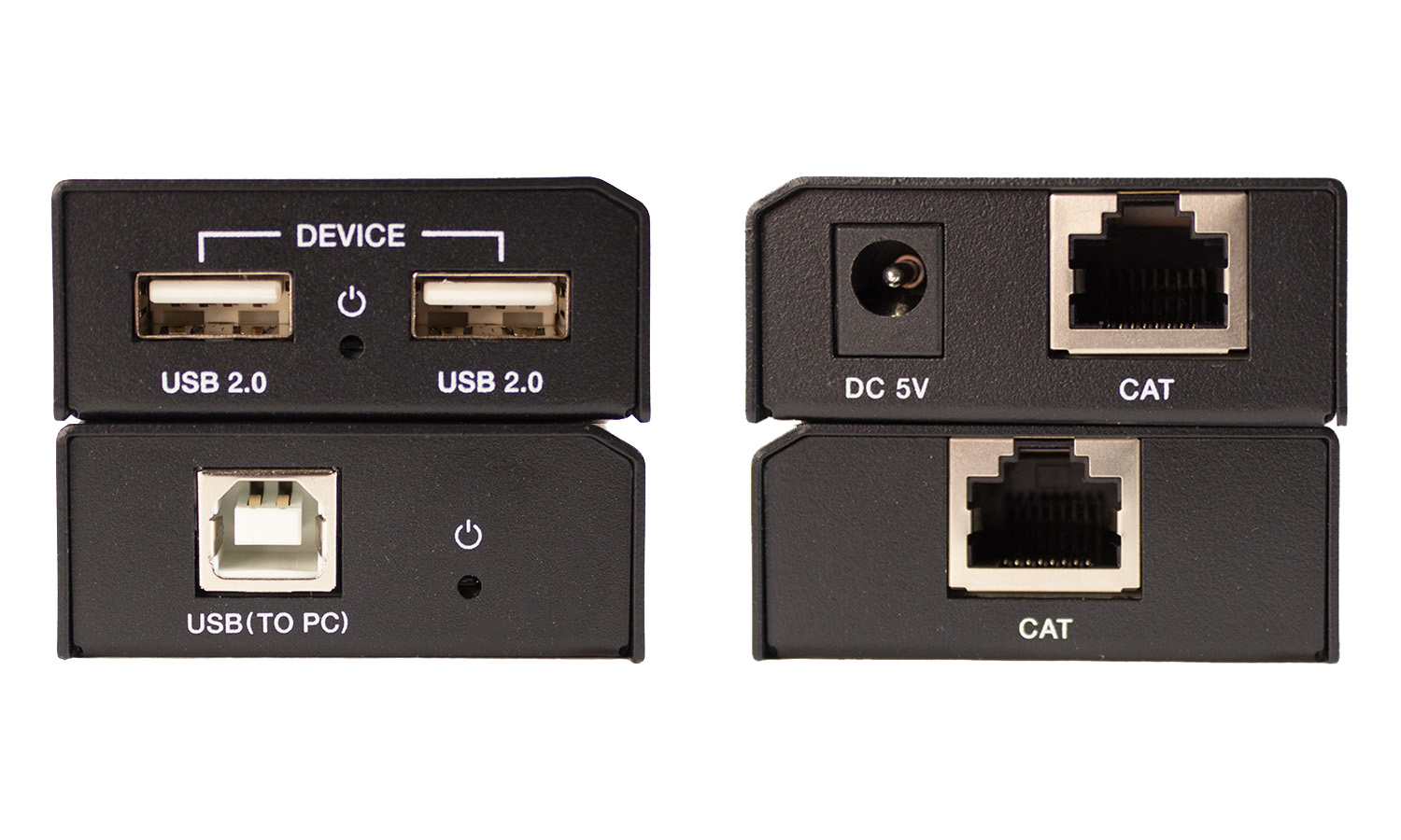 The BG-USB2.0-SR is a USB 2.0 Extender transfers USB signals up to 50 meters/164ft distance via Cat5e/6 cable. Plug your PC into the transmitter using the USB-B port for extension Power is supplied on the Receiver side using the included 5V/1A power port. This is necessary to meet the requirements for certain peripheral devices such as Keyboards, Mouse, Webcams and Disk drives utilizing the USB-A ports on the Receiver unit demanding more power for proper operation. Note, connecting USB Hubs limit transmissions to 130ft/40M due to bandwidth separation of multiple peripherals.