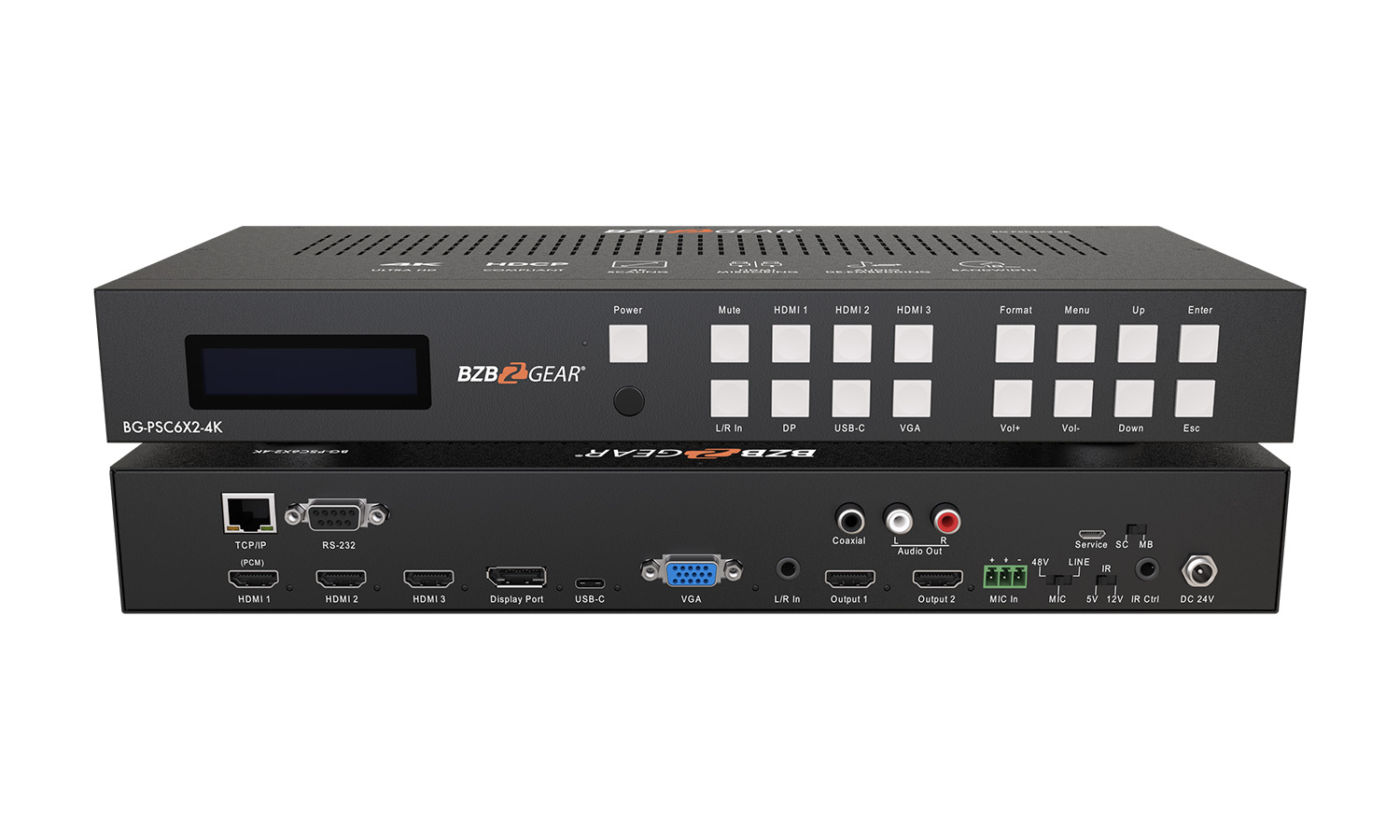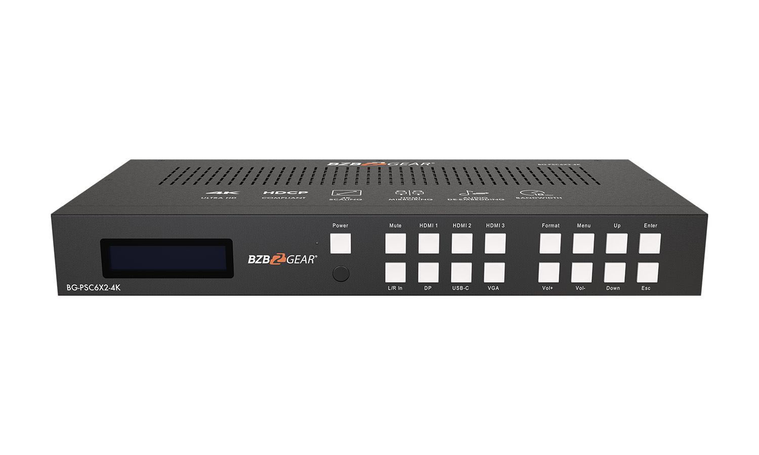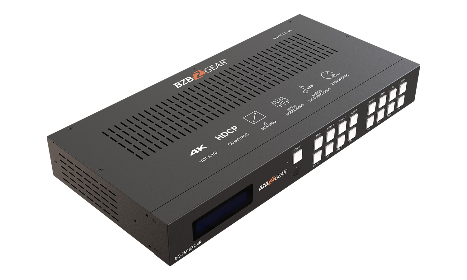 - LCD display: It shows the status of input-to-output selection, EDID info, and the other information.