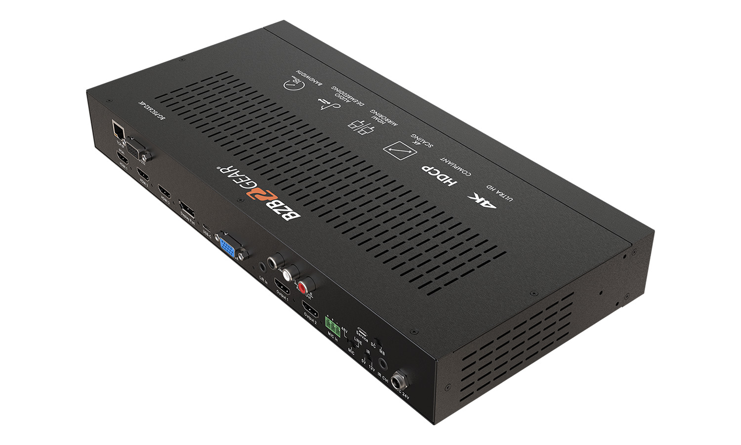 - Volume up: Press to increase audio’s volume from HDMI outputs and Audio output.