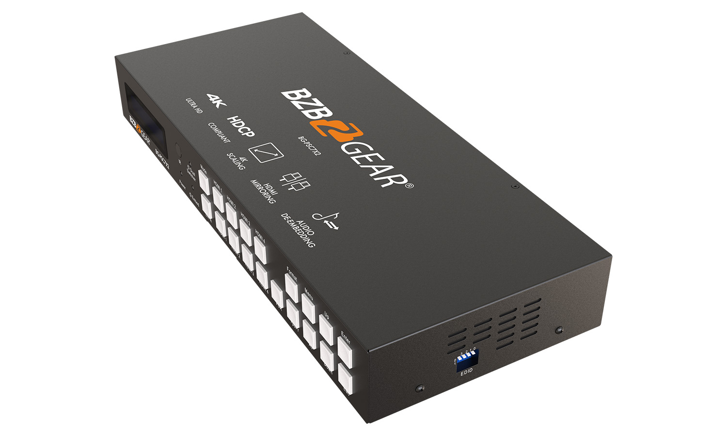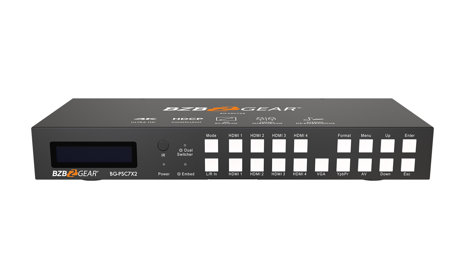 LCD display: It shows the status of input-to-output selection, EDID info, and other information.