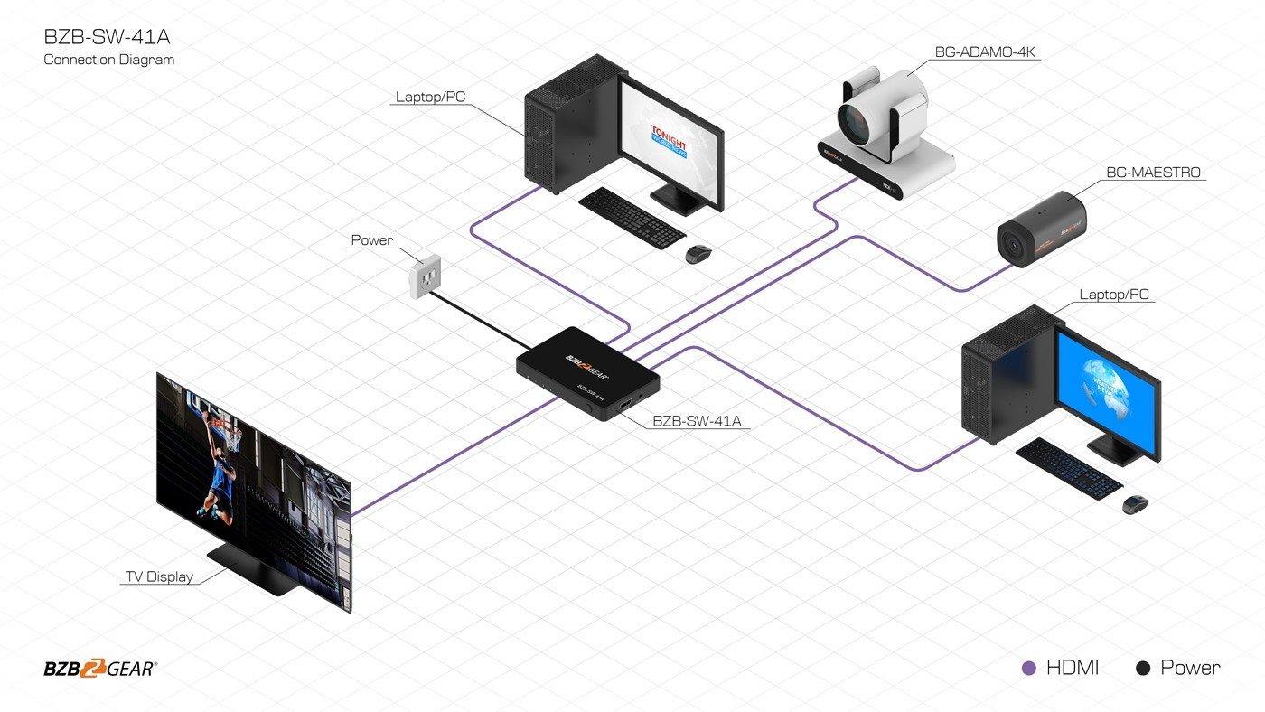 - HDMI Output: Connect to an HDMI display to view the input signal sources.