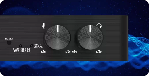 [Blue] The device is connected to the USB 3.0 port on the host. - LED INDICATOR: Power & input signal indicator LED