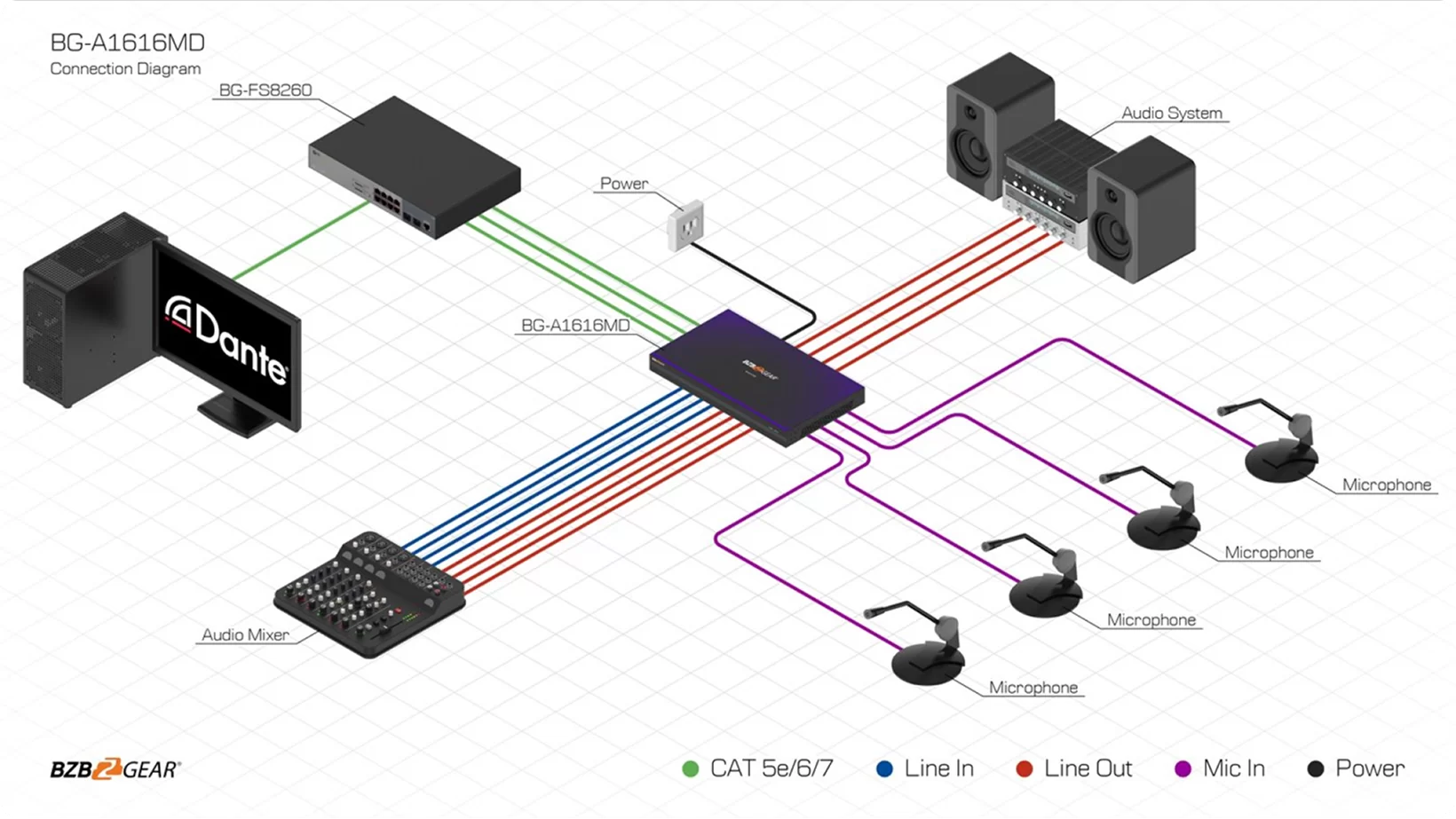 The BZBGEAR Audio DSP is a versatile audio processing solution designed to give users complete control over their audio signals.