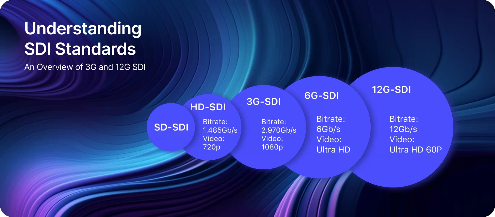 | Resolution Support | 3G SDI is primarily used for transmitting standard high-definition video signals up to 1080p resolution. | 12G SDI is designed to handle ultra-high-definition (UHD) video signals, including 4K (3840x2160) and even 8K (7680x4320) resolutions. It can also support higher frame rates, such as 60fps in 4K. |