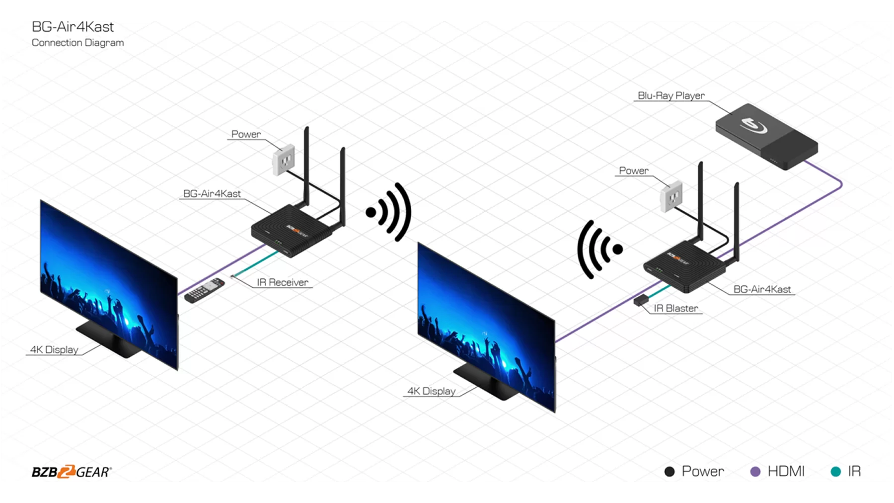 4K UHD Wireless HDMI Sender/Receiver Extender Kit with IR up to 164ft