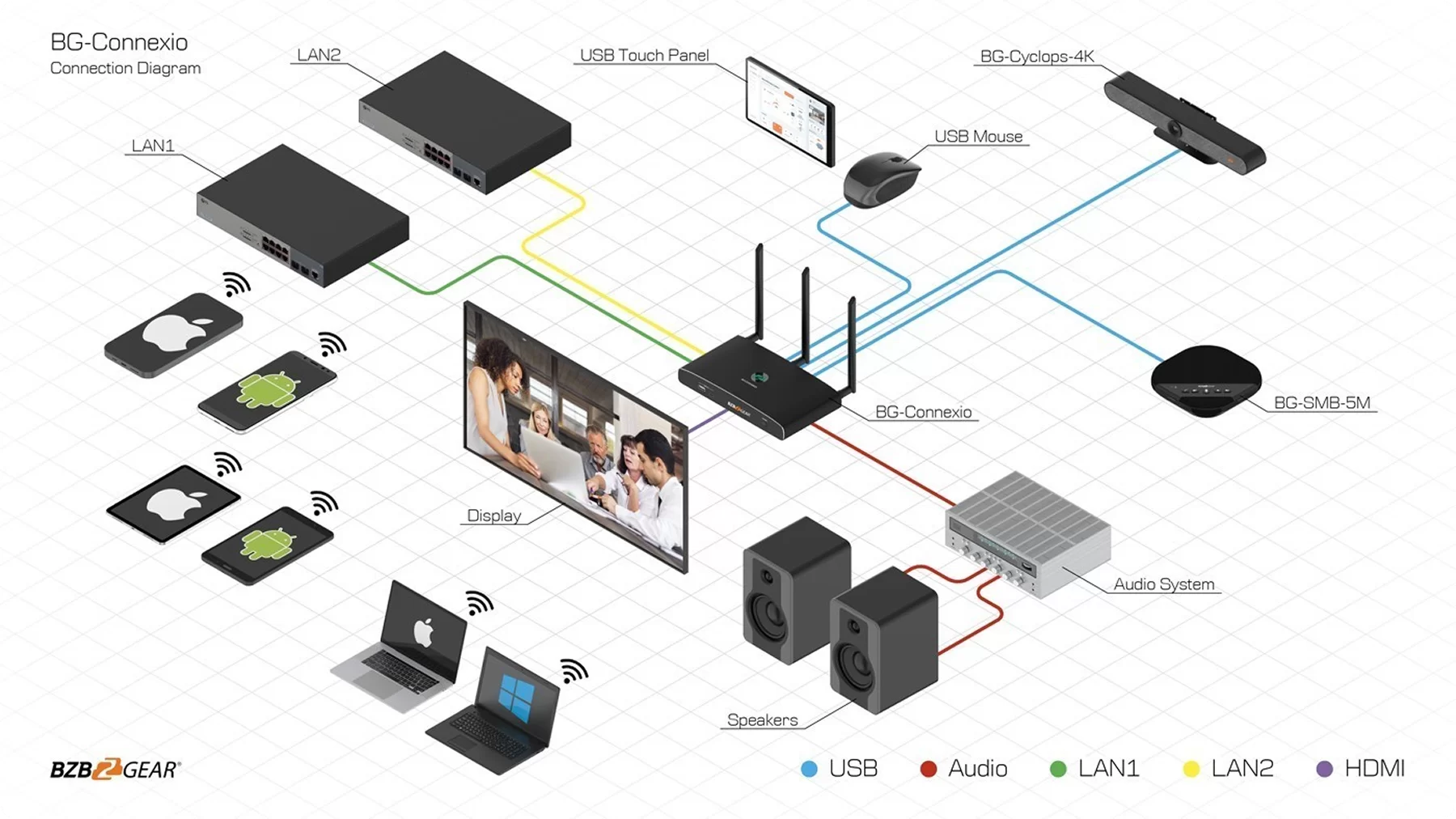 BZBGEAR presentation switchers deliver innovative 4K solutions with seamless wireless and hardwired connectivity. Designed for versatility, they support various connection options and offer integrated and de-embedded audio. With intuitive controls, they ensure smooth operation for professional meetings and presentations.