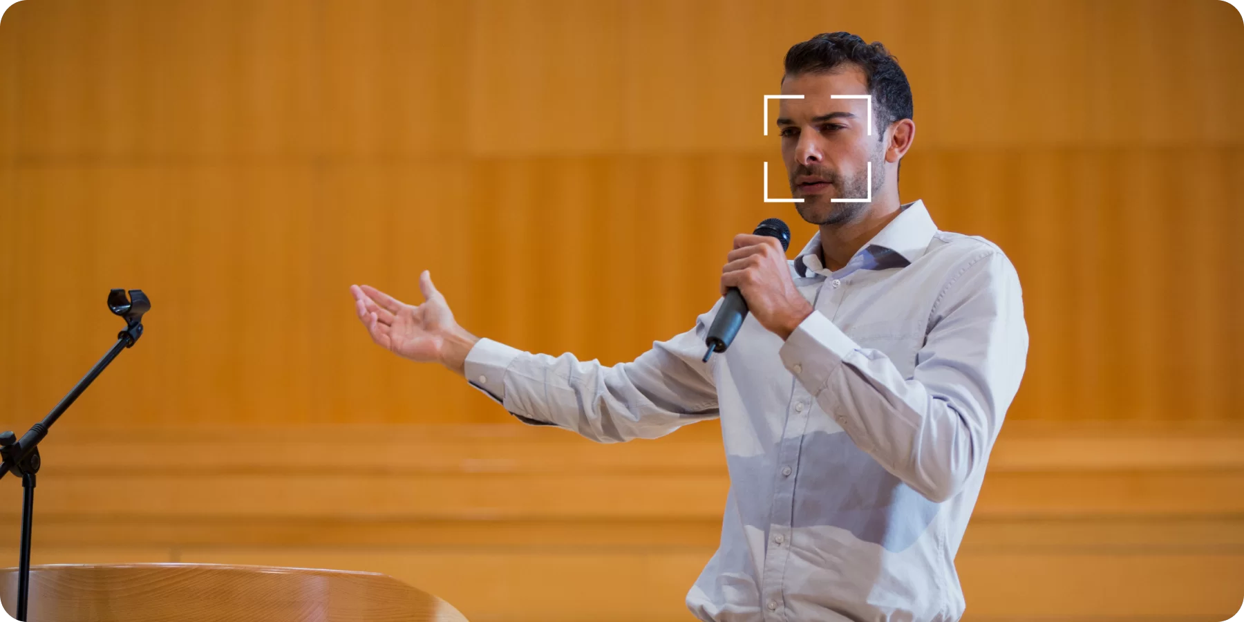 - A speaker or performer moves freely across a stage or pulpit area. The venue needs professional-grade video coverage without a camera operator.